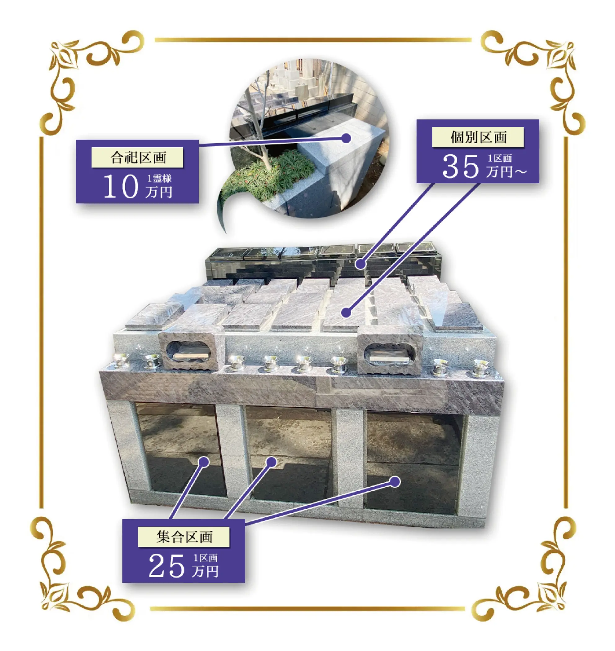 いずれの区画の場合も永代供養されます。お墓の継承も心配がなく、お墓じまいも不要です。